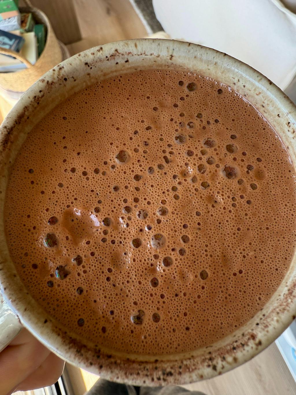 - Froth, whisk, or blend until smooth